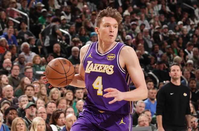 本场比赛中,湖人的替补侧翼新星道尔顿-克内克特(Dalton Knecht)的表现其实还算不错,他的状态也是有了一定的提升。克内克特全场出场33分48秒,投篮8中4,三分线外4中1,得到了9分6篮板1助攻3抢断1盖帽的数据,正负值也是达到了+24。克内克特在进攻端手感平平,但还是得到了一些分数,至少也是做出了一定的贡献的。不过至少在本场比赛中,克内克特在防守端的表现绝对是值得肯定的,他有着很高的防守积极性,这样的积极性也是带来了不错的防守效果,他并没有出现什么防守方面的问题。至少在本场比赛中,克内克特在攻防两端的不错表现也为球队的胜利提供了不少的支持和帮助,而他的表现也得到了球队教练组的认可,他也是得到了大量的出场时间。