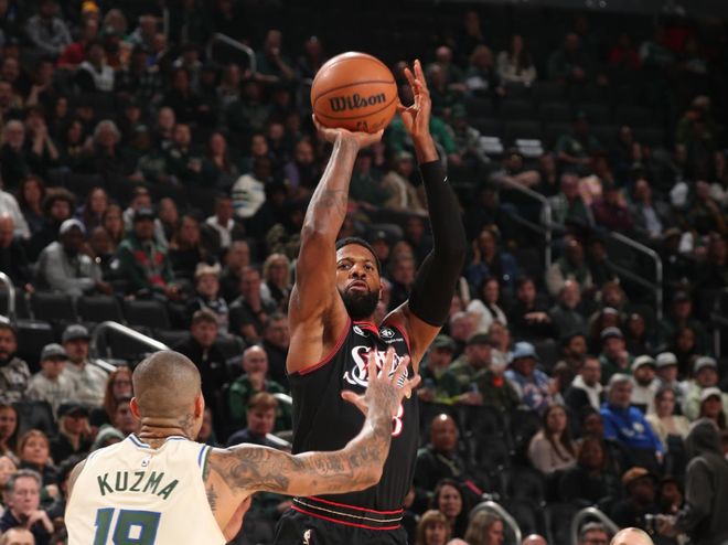 打一些实力强的球队,库里不砍下40+真的很难赢球。虽然巴特勒很努力,但从数据层面,给勇士和库里的支援度,无法匹配薪资水准。还有一位昔日的超巨,新赛季开打后也曾因伤缺战1个月时间,最近刚刚复出,打了三场比赛,场均13.3分4.7篮板3.7助攻,三项命中率低至38%+31%+68%,对应的是5167万美元超级顶薪,他就是保罗乔治!打快船9中2拿到9分7篮板3助攻,打雄鹿残阵拿到21分5篮板3助攻,打热火10中3拿到10分2篮板5助攻,他的表现总结一句话:进攻端失去自信,防守端大幅下滑。
