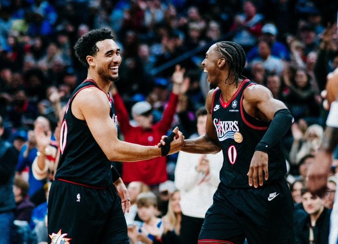 为什么?得益于马克西本赛季超级爆发(场均33分4.6篮板7.8助攻1.6抢断),76人在竞争激烈的东部(10支球队胜率超过5成),基本保持在前八名。其实说句难听话,76人开局一度打出数一数二的表现,恩比德出场时间限制+负荷管理进进出出,把球队整体效率拖下来了,年轻队友要给他填坑。乔治复出后,他在场时球队百回合输对手2.2分;他不在场时球队百回合赢对手1.4分,于是On-Off值是-3.6。关键是乔治在场时,球队进攻效率差值是-10.7,简单来说,进攻已经到了联盟垫底水平!