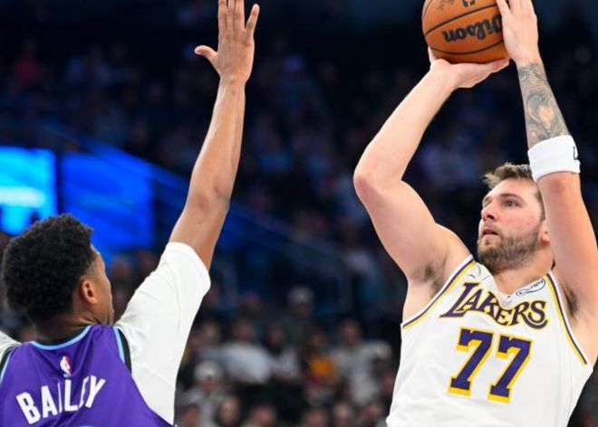 现在詹姆斯的状态是未知数,湖人很多时候只能依靠东契奇和里夫斯,东契奇场均交出34.5分8.8篮板8.9助攻,本赛季已经有8次交出了30+。里夫斯场均拿到27.6分5.5篮板7.3助攻,是东契奇和詹姆斯身边最好的帮手。